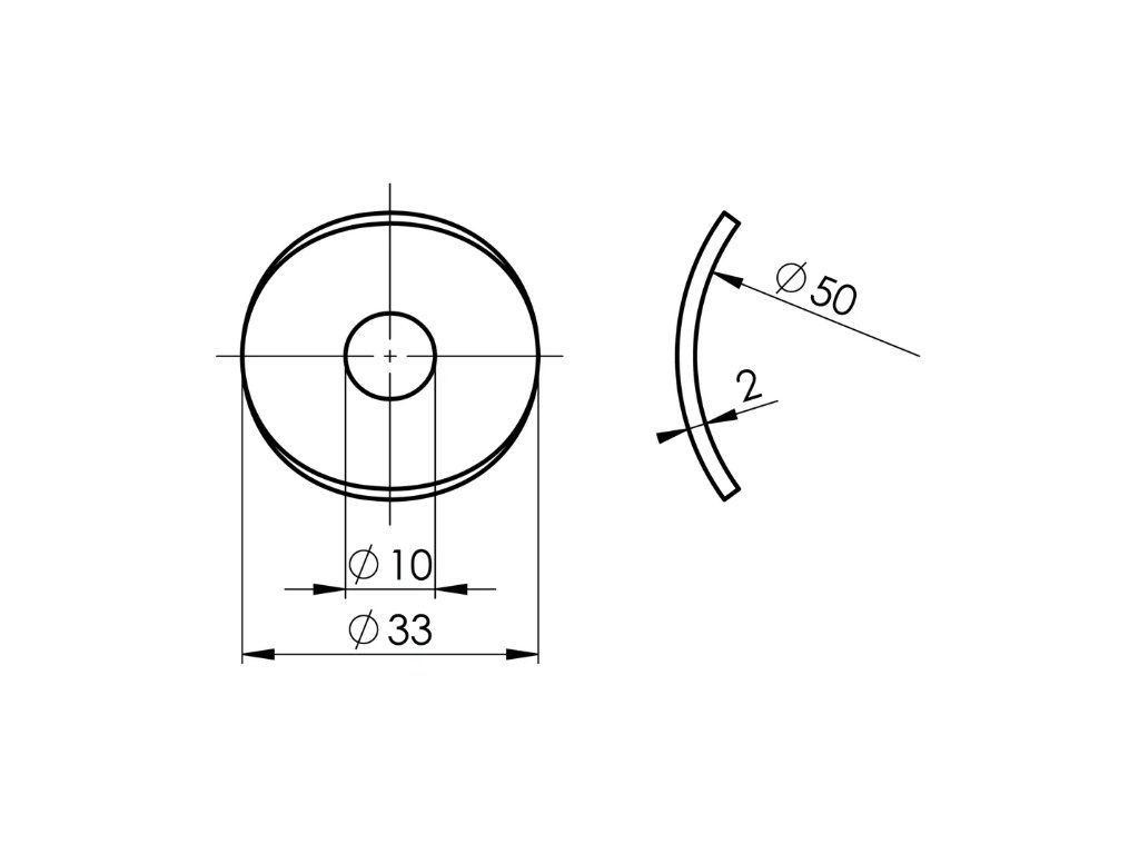 Nerezová rádiusová podložka určená pro sloupky a madla Ø 42,4 mm. Slouží k přesnému dosednutí kotevního prvku na zakřivený povrch sloupku a zajišťuje správné rozložení tlaku i čistý estetický vzhled spoje.