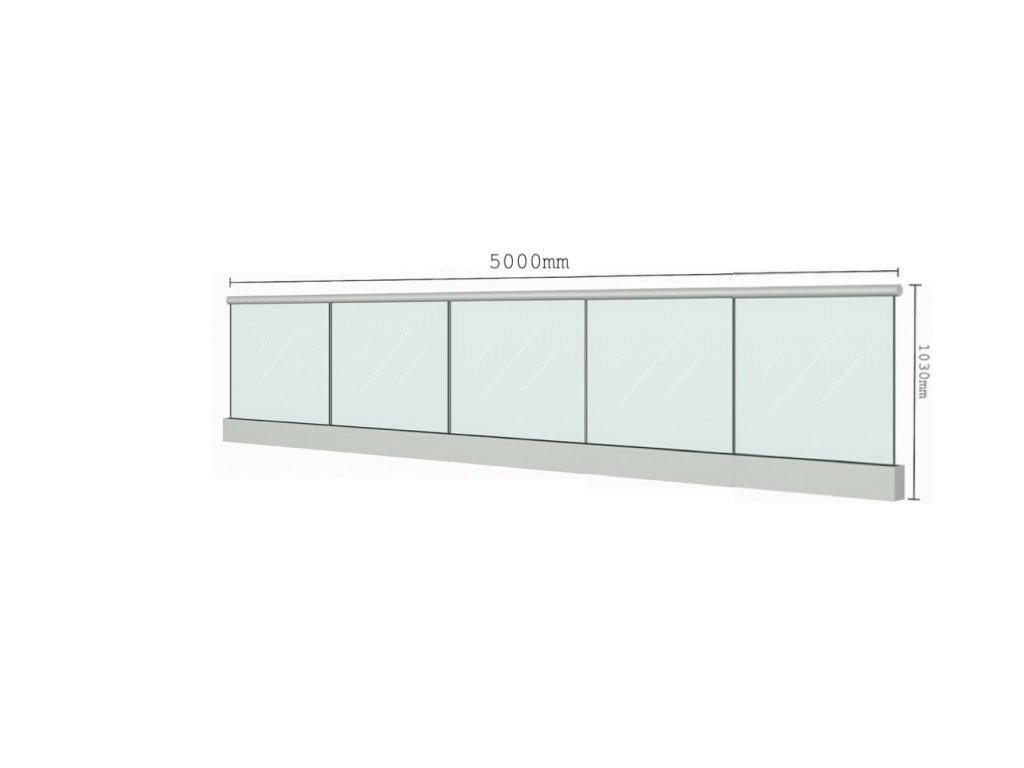 Celoskleněné zábradlí Philadelphia (komplet) s madlem Ø 42,4mm - délka 5000mm
