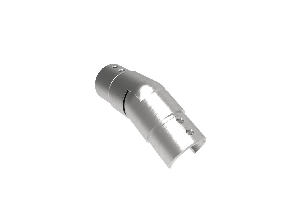 Nerezový přechod madla na sklo ve formě kolena dolů s nastavitelným úhlem 25–55° je určen pro napojení madla na skleněnou výplň u moderních zábradlí. Umožňuje plynulý a estetický přechod madla v klesajícím směru, typicky na schodištích nebo šikmých úsecích zábradlí.
