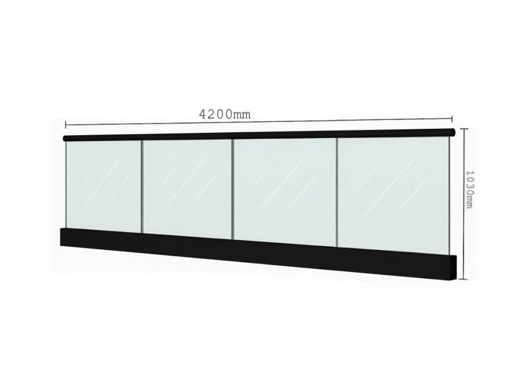 Celoskleněné zábradlí Philadelphia (komplet) s madlem Ø 42,4mm - délka 4200mm
