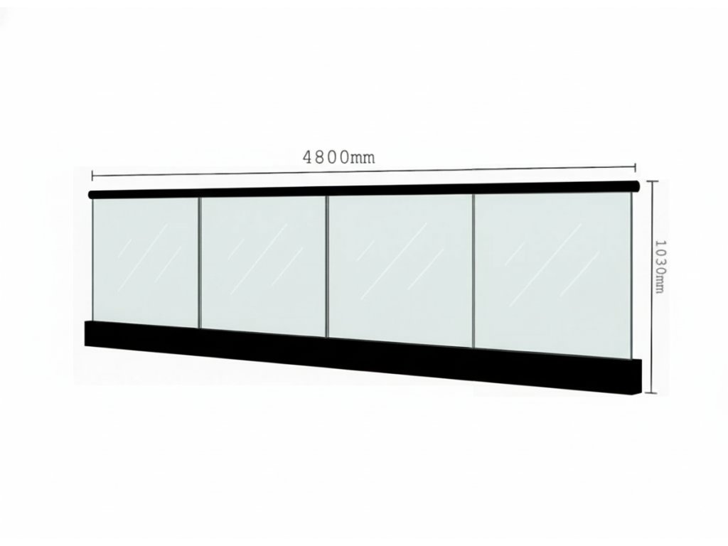 Celoskleněné zábradlí Philadelphia (komplet) s madlem Ø 42,4mm - délka 4800mm