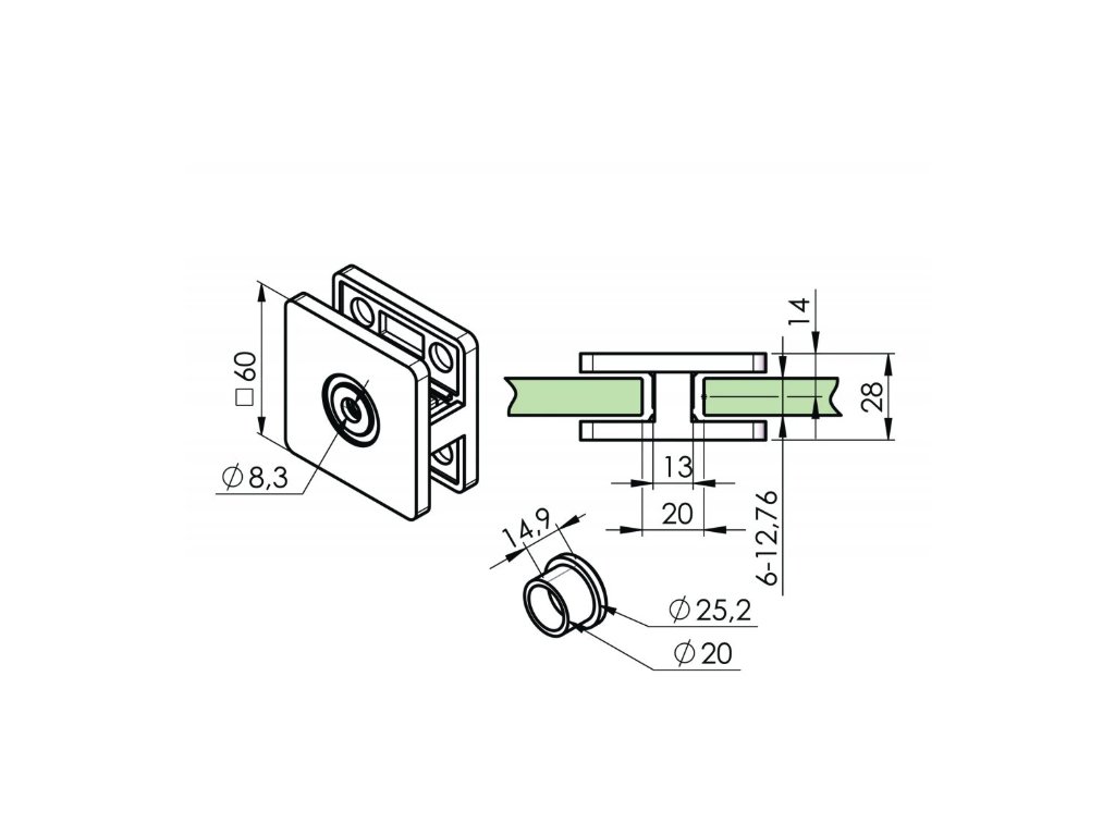 Držák skla oboustranný mimoosový, model 21A, nerez AISI316, lesk