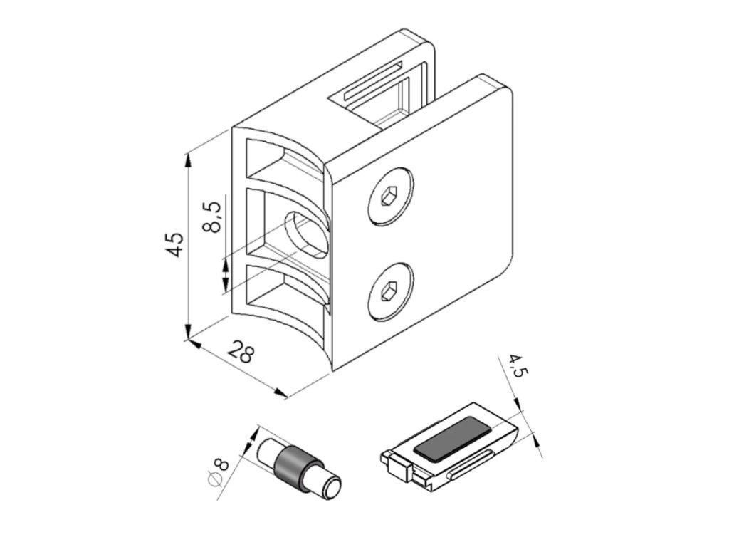 Držák je určen k upevnění a stabilizaci skleněné, plechové nebo tabulové výplně v zábradlí, balkonech či schodištích. Zajišťuje pevné a bezpečné uchycení výplně a stabilitu celé konstrukce.