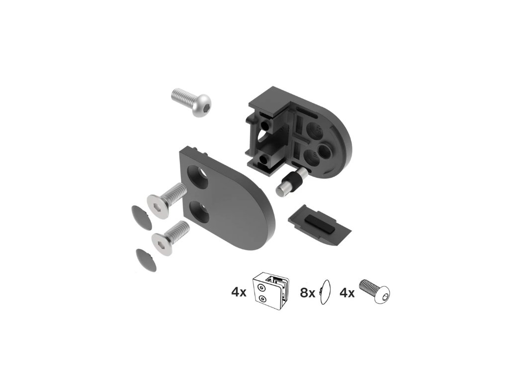 Držák skla – SET 4 ks, model 200P, Flat, Nerez AISI 304, Práškovaný, Černá RAL 9005