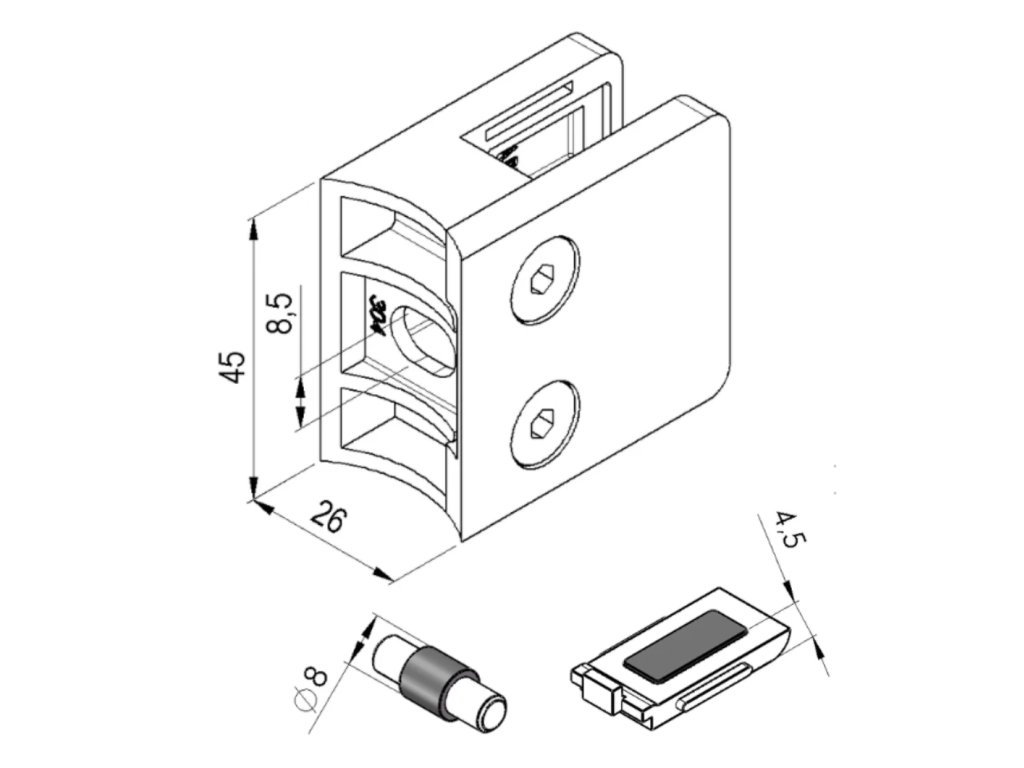 Držák je určen k upevnění a stabilizaci skleněné, plechové nebo tabulové výplně v zábradlí, balkonech či schodištích. Zajišťuje pevné a bezpečné uchycení výplně a stabilitu celé konstrukce.