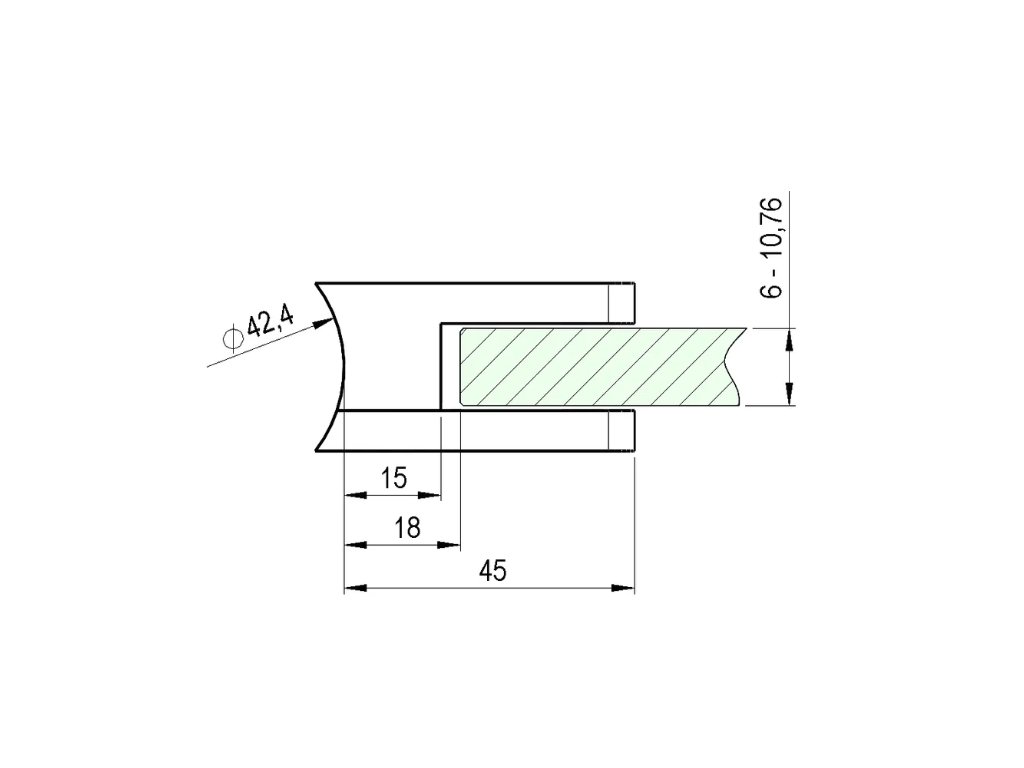 Držák skla 45x45mm pro sloupek O42,4 mm, model 23 – nerez AISI 316, broušený