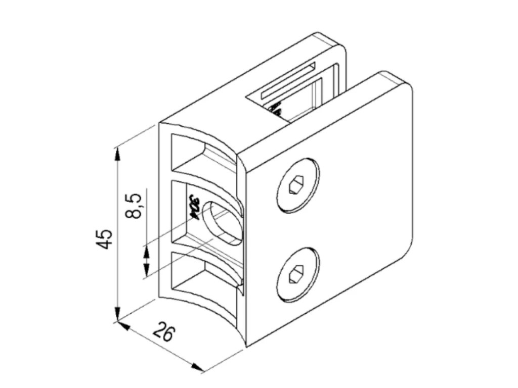 Držák je určen k upevnění a stabilizaci skleněné, plechové nebo tabulové výplně v zábradlí, balkonech či schodištích. Zajišťuje pevné a bezpečné uchycení výplně a stabilitu celé konstrukce. Díky čistému a nadčasovému provedení je vhodný pro moderní architektonická řešení.