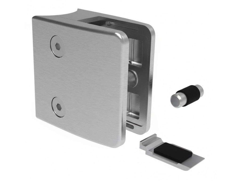 Kvalitní držák pro skleněné, plechové nebo tabulové výplně zábradlí, balkónů a schodišť. Vyroben z odolné nerezi AISI 316 s broušeným povrchem. Výplň je bezpečně uchycena svěrným spojem, případně kombinací svěrného spoje s kolíkem nebo bezpečnostním plátkem se zámkem při bočním kotvení.