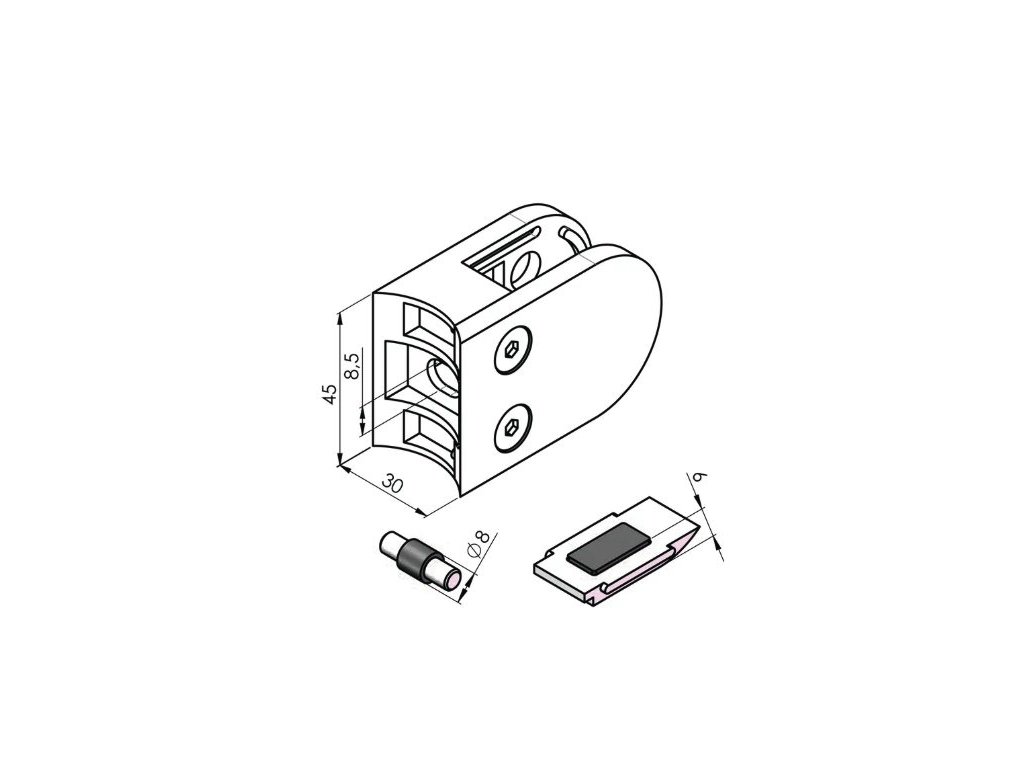 Držák pro skleněné výplně nerezového zábradlí, vhodný pro interiéry i exteriéry. Vyroben z odolné slitiny ZAMAK v surovém provedení, kompatibilní se sklem tloušťky 6–12,76 mm a určen pro pevné uchycení na sloupek D42,4 mm.