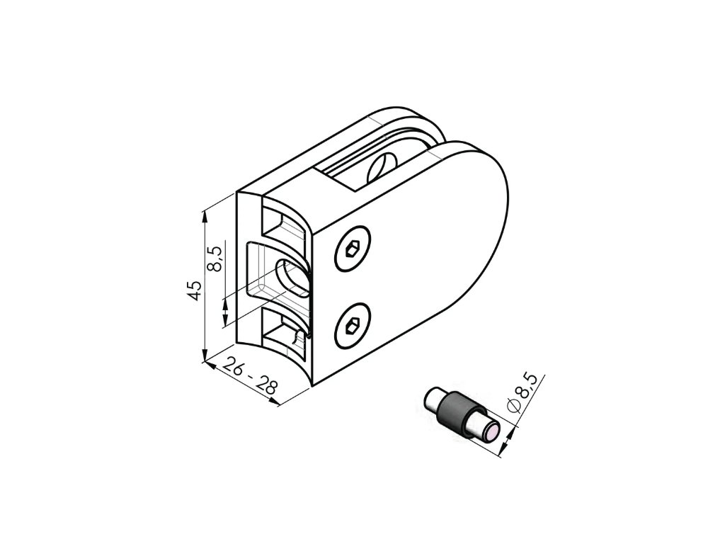 Držák skla 63x45mm pro sloupek O48,3 mm, model 22 - nerez AISI 316, broušený