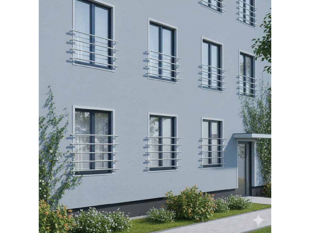 Francouzský balkon, známý také jako okenní zábradlí, není pouze estetickým prvkem – plní především důležitou ochrannou funkci, kdy zabraňuje pádu z okna a zároveň dodává fasádě elegantní evropský vzhled. Model HORNET III kombinuje robustní provedení s minimalistickým designem, díky čemuž se skvěle hodí jak k moderní, tak i ke klasické architektuře.