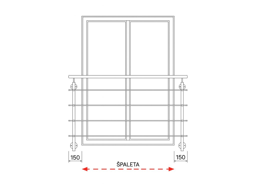 Stavebnice zábradlí pro francouzské okno model ZULU III pro okno 130 cm a větší.