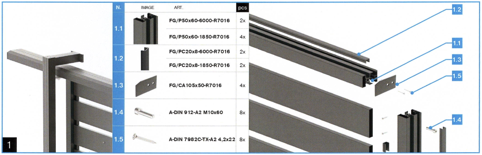 | Sada hliníkového sloupku 50x60 a krytky - 6000mm R7016 | 2ks | Odkaz na e-shop |