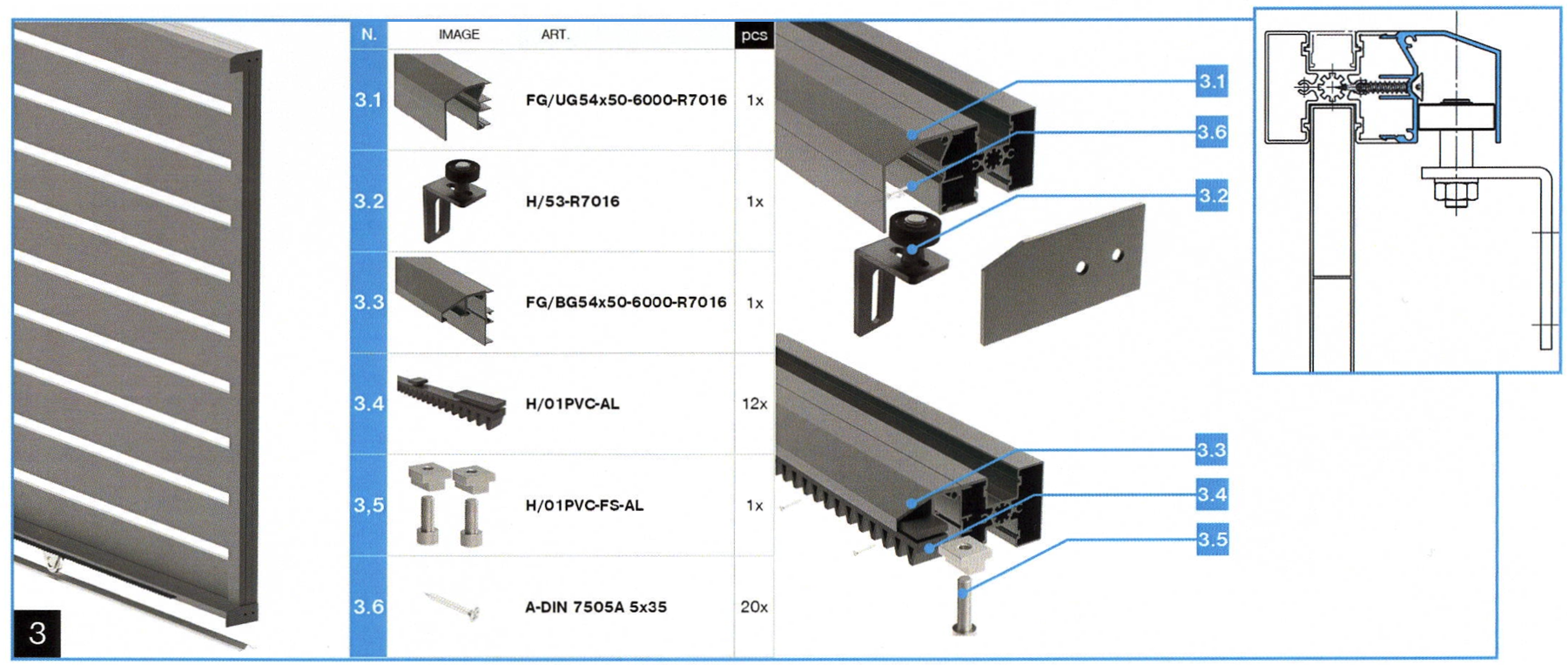 | Vodící profil horní pro posuvné brány 6000mm R7016 | 1ks | Odkaz na e-shop | ![]() |
