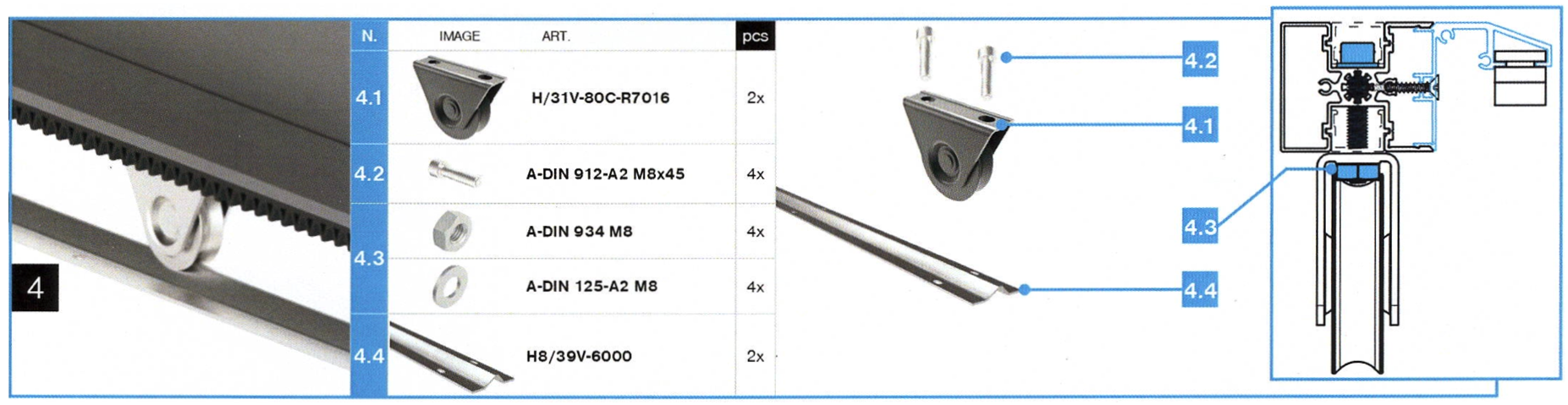 | Hliníková krytka vodících profilů posuvné brány 105x50 R7016 | 4ks | Odkaz na e-shop |