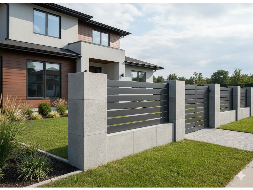 Plotová sestava s lamelami 20×100 mm a mezerami 55 mm poskytuje vyvážený poměr soukromí, vzdušnosti a světla. Díky montáži bez svařování a chytrému systému adaptérů je instalace rychlá a efektivní. Odolná konstrukce bez nutnosti lakování či dodatečných úprav.