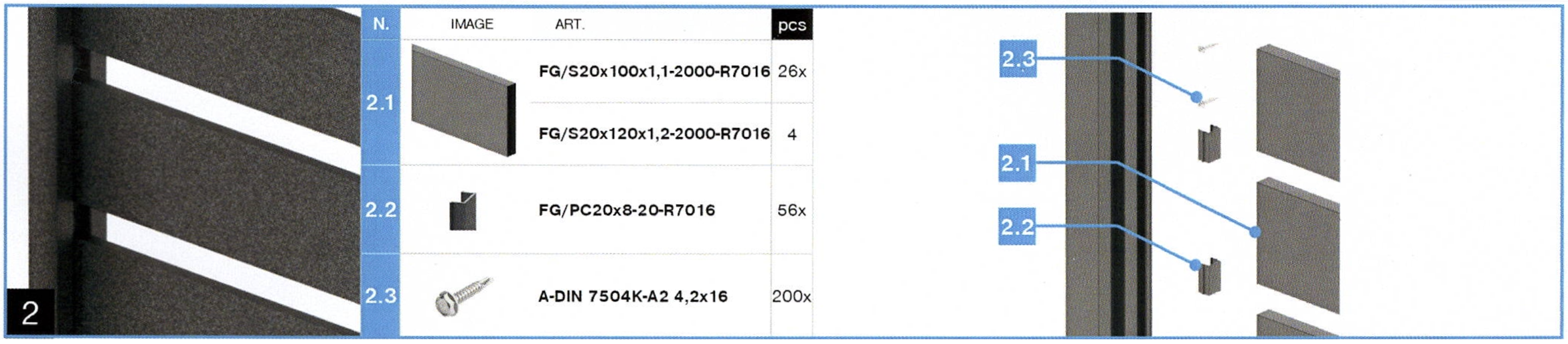 | Hliníková plotová výplň 20x100-2000mm | 26ks | Odkaz na e-shop |
