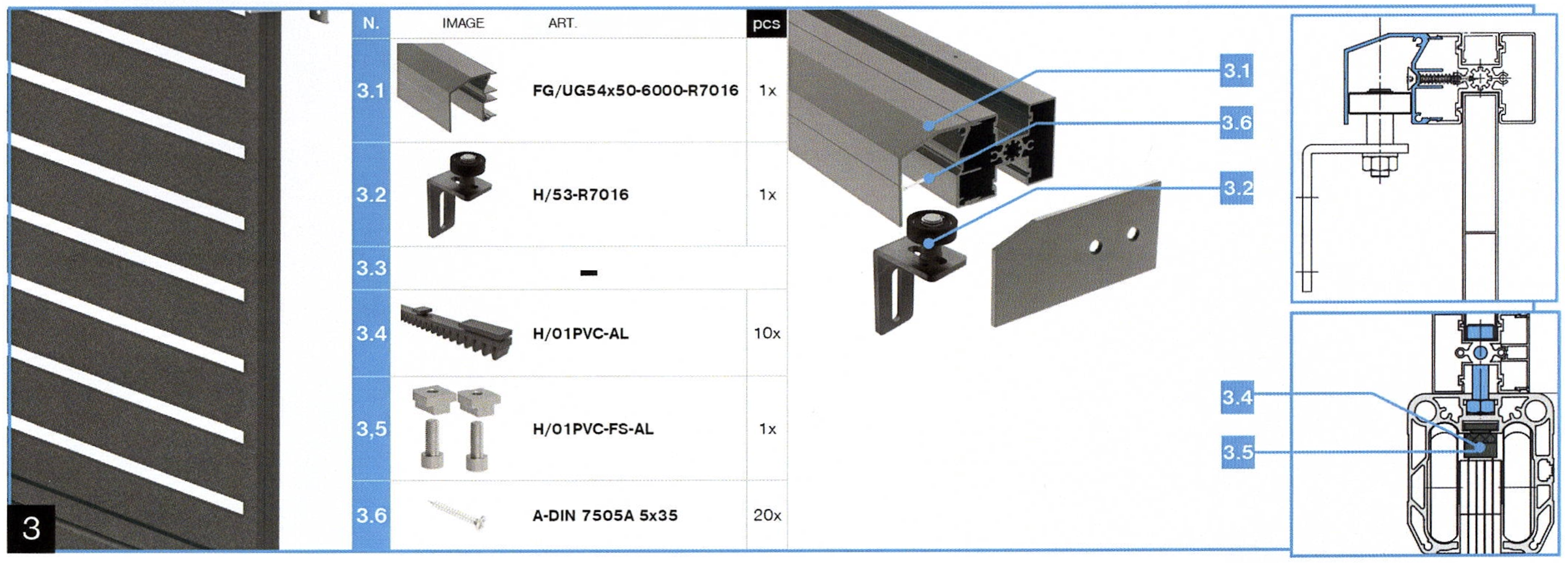 | Vodící profil horní pro posuvné brány 6000mm R7016 | 1ks | Odkaz na e-shop | ![]() |