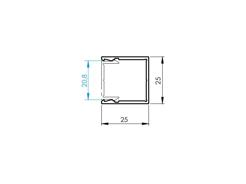 Průřez adaptéru: 25×25