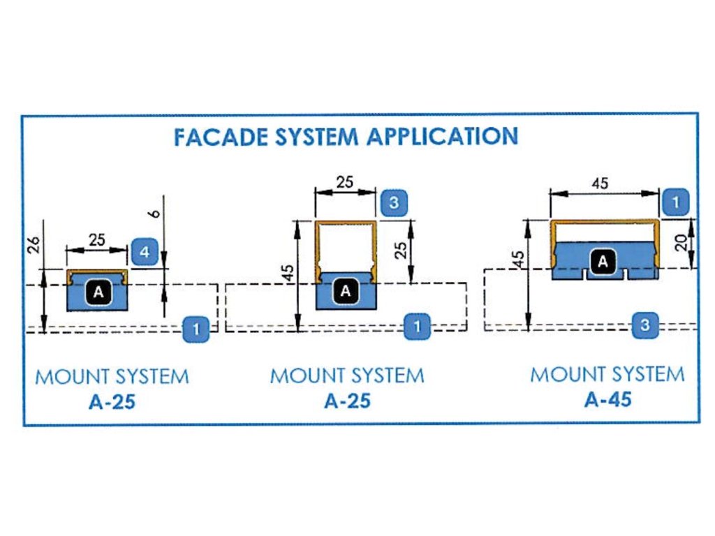 Použití jako zacvakávací spojka pro kotvení svislých fasádních profilů (kód produktu FG/AL40U…, G/AL20U…, G/AL20x6…) do nosných fasádních profilů (kód produktu G/AL40U…, G/AL20U…) bez nutnosti šroubování či svařování