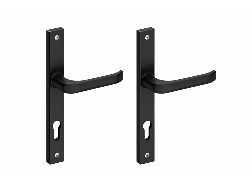 Sada koule – koule se štítkem z kvalitní ZAMAK slitiny v provedení černá barva. Koule i štítky jsou odlity ze zamaku a práškově lakovány, což zajišťuje vysokou odolnost a moderní vzhled. Sada je rozměrově přizpůsobena kazetám naší výroby a kompatibilní se zámky s roztečí 72 mm i 90 mm.
