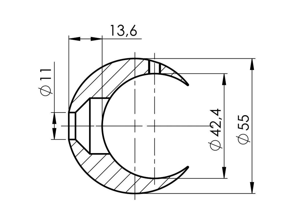 Držák madla ve tvaru prstence, vyrobený z nerezové oceli AISI 316 s brusným povrchem. Zajišťuje pevné a stabilní uchycení madla s dlouhou životností.