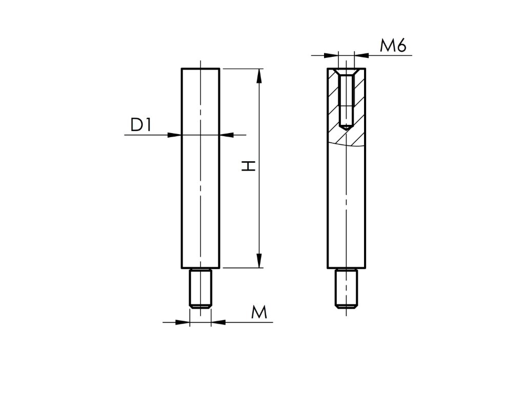 Krček podpěry madla, výška 120 mm, závit M8 - nerez AISI 304, broušený
