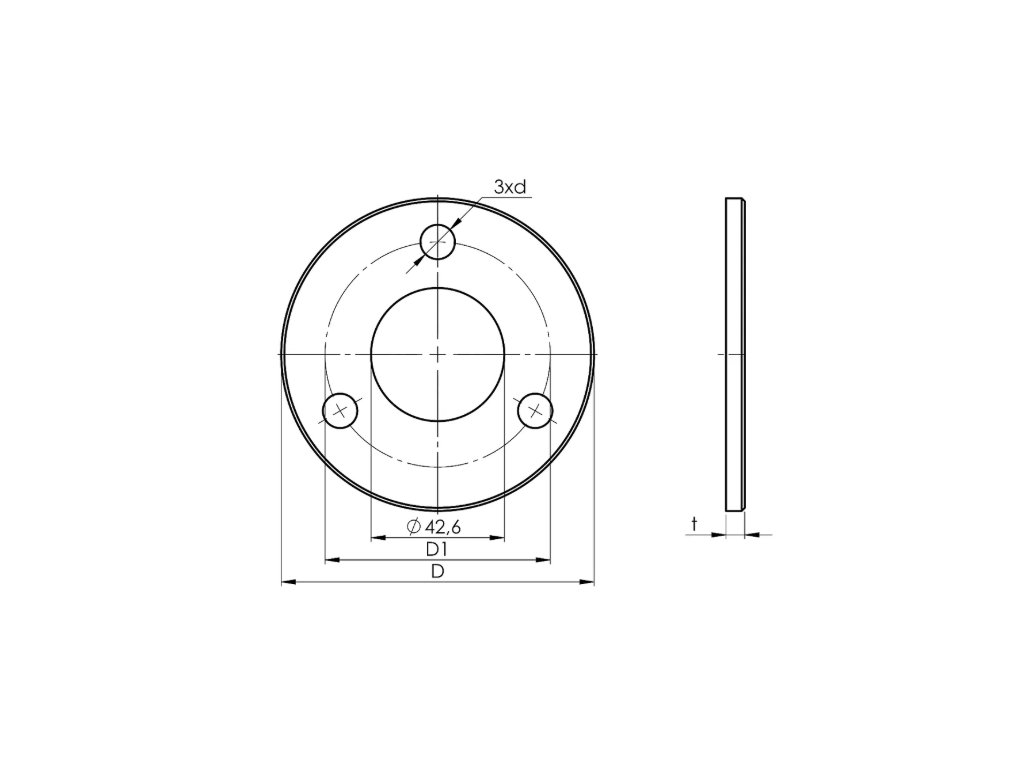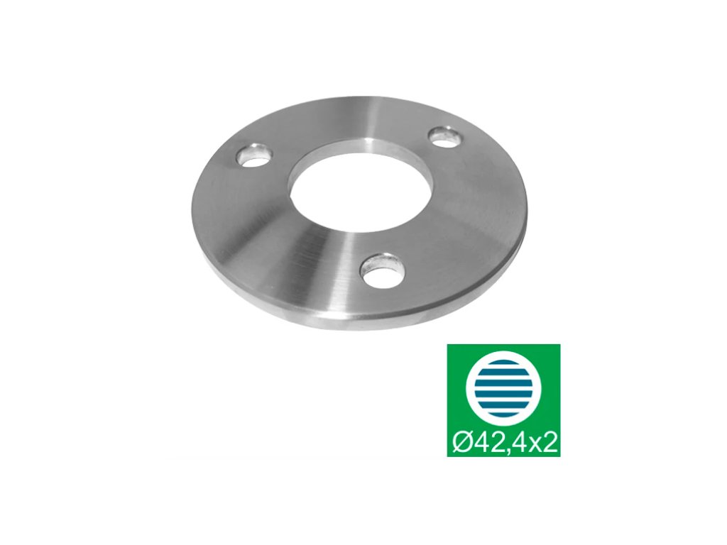 Nerezová kotvicí příruba pro horní kotvení sloupků, vyrobená z nerezové oceli AISI 304 s brusovaným povrchem. Příruba je určena pro sloupky Ø 42,4 mm a je vhodná pro řešení, kde je madlo nebo sloupek navařován přímo na přírubu. Díky pevnému provedení a třem montážním otvorům zajišťuje stabilní a bezpečné ukotvení konstrukce k podkladu.