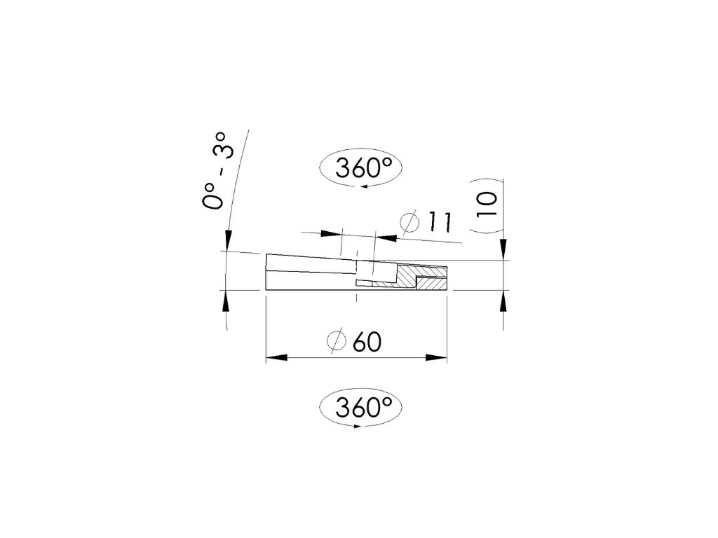 Úhlově nastavitelná nerezová podložka O60 x 10 mm, Nerez AISI 304, surový stav