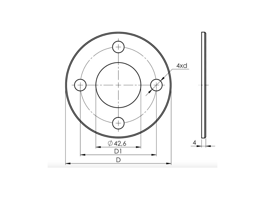Nerezová kotvicí rozeta pro horní kotvení sloupků, vyrobená z nerezové oceli AISI 304 v surovém stavu. Rozeta je určena pro svařované spojení sloupku s podkladem a díky čtyřem montážním otvorům zajišťuje vyšší stabilitu uchycení. Vhodná pro sloupky Ø 42,4 mm, ideální jako technicky jednoduchý a spolehlivý základ zábradlové konstrukce.
