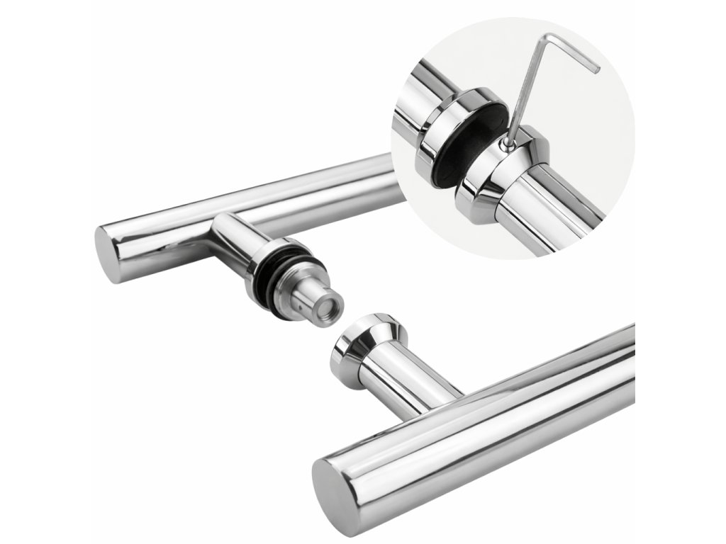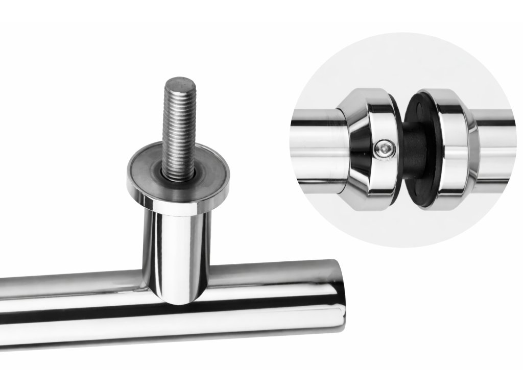 Madlo z broušené nerezové oceli AISI 304 v provedení K320. Vhodné pro skleněné dveře s vrtáním otvorů.