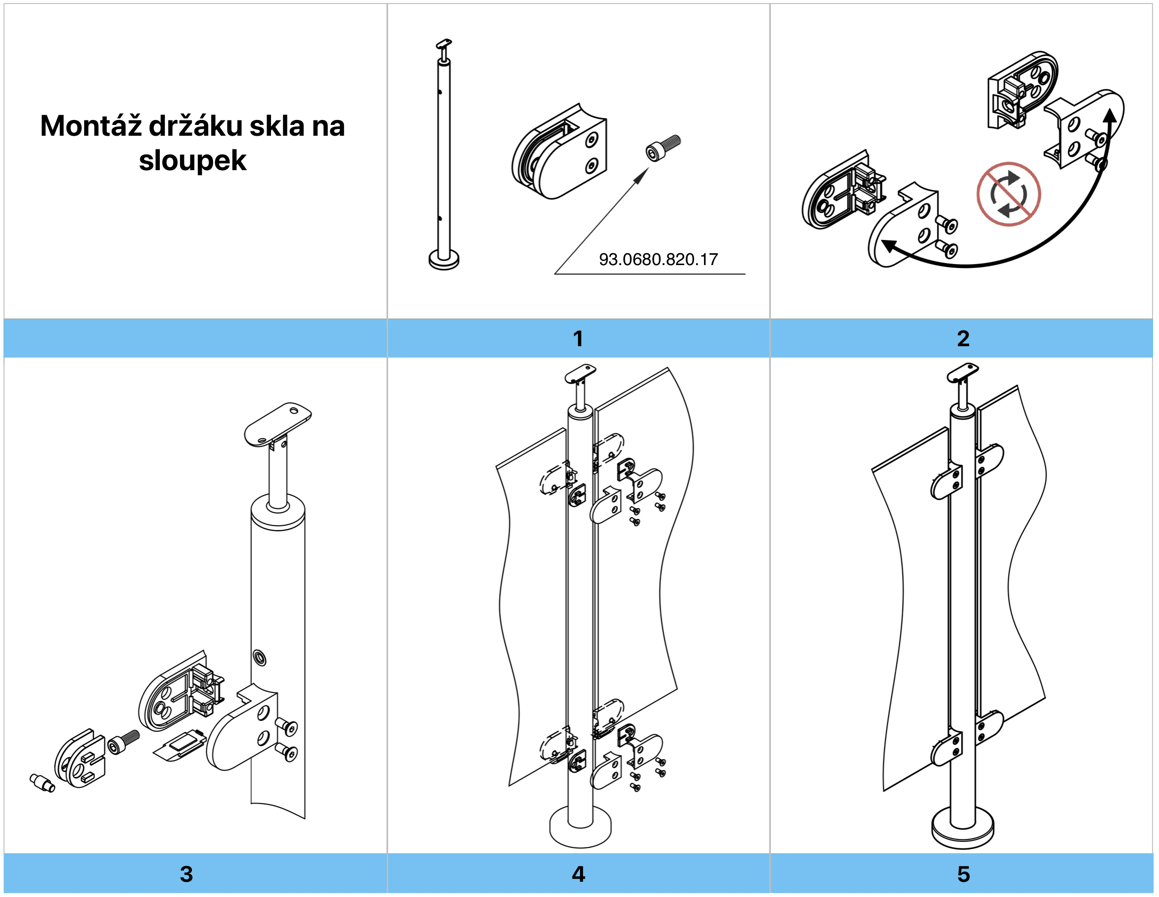 Držák skla 45x45mm pro sloupek O42,4 mm, model 23 - SET 4ks, nerez AISI 304, broušený