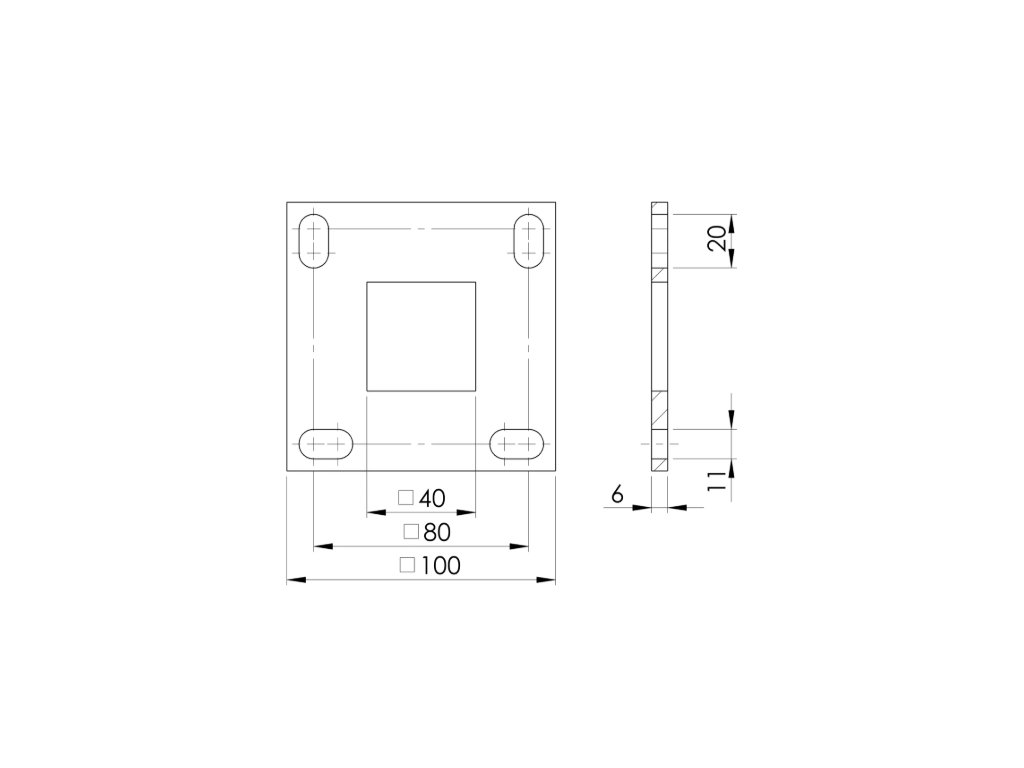 Nerezová čtyřhranná příruba pro horní kotvení sloupků, vyrobená z nerezové oceli AISI 304 v surovém stavu. Příruba je určena pro svařované spojení hranatého sloupku s podkladem a díky oválným montážním otvorům umožňuje jemné seřízení polohy při montáži. Vhodná jako pevný a stabilní základ zábradlových i jiných konstrukcí.