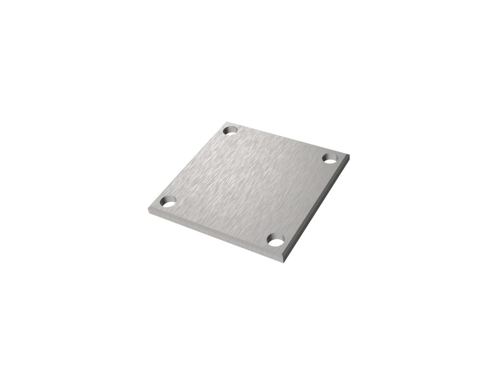Nerezová čtyřhranná příruba pro horní kotvení sloupků, vyrobená z kvalitní nerezové oceli AISI 304 s brusovaným povrchem. Slouží jako pevná a stabilní základna pro jeklové sloupky 40 × 40 × 2 mm a je určena pro šroubované kotvení k podkladu. Díky čtyřem montážním otvorům zajišťuje rovnoměrné rozložení zatížení a spolehlivé uchycení konstrukce.