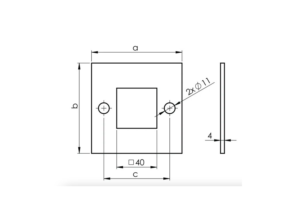 Nerezová čtyřhranná příruba pro horní kotvení sloupků, vyrobená z nerezové oceli AISI 304 v surovém stavu. Příruba je určena pro svařované spojení hranatého sloupku s podkladem a díky dvěma montážním otvorům umožňuje pevné a přesné uchycení. Vhodná jako kompaktní základ pro zábradlí a další konstrukční prvky.