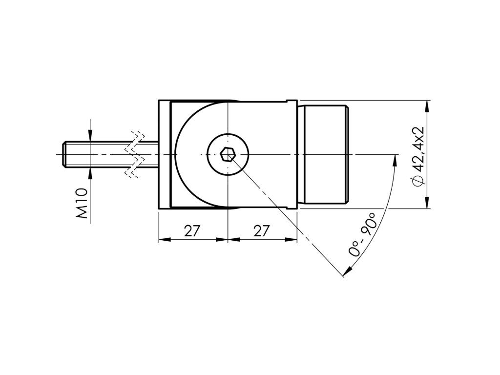 Nerezová kloubová spojka madla určená pro nástěnné kotvení madel Ø 42,4 mm. Vyrobena z kvalitní nerezové oceli AISI 304 s brusovaným povrchem K320. Díky kloubovému mechanismu umožňuje plynulé nastavení úhlu v rozsahu ±90°, což zajišťuje flexibilní řešení při montáži madel na schodištích nebo rampách. Spojení s madlem je řešeno lepením, které vytváří čistý a elegantní vzhled bez viditelných spojů.