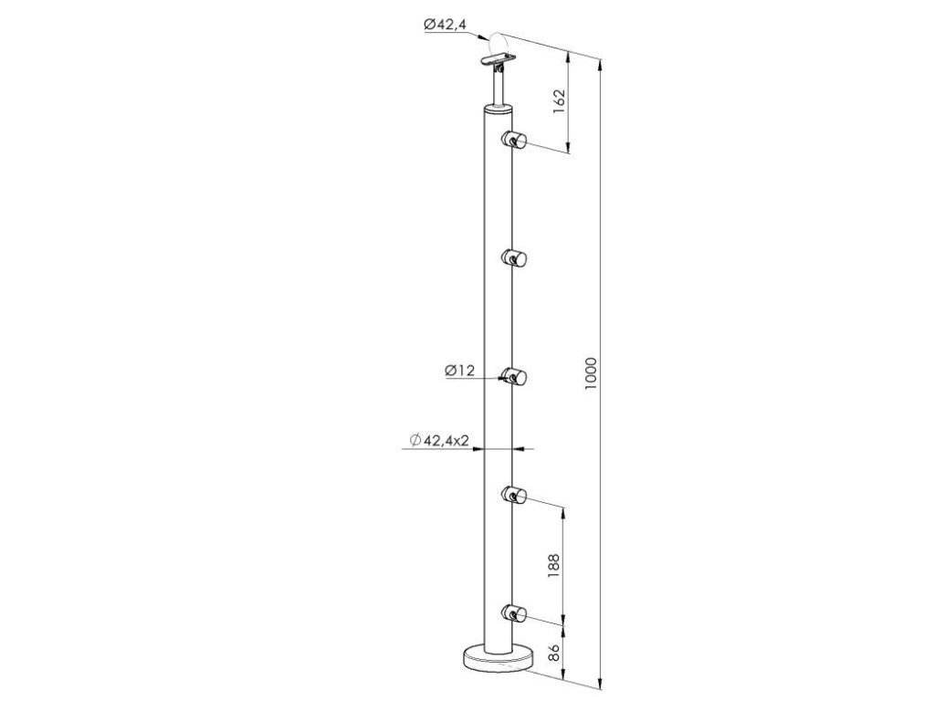 Nerezové lankové zábradlí, 6000x1000mm - 5x výplň