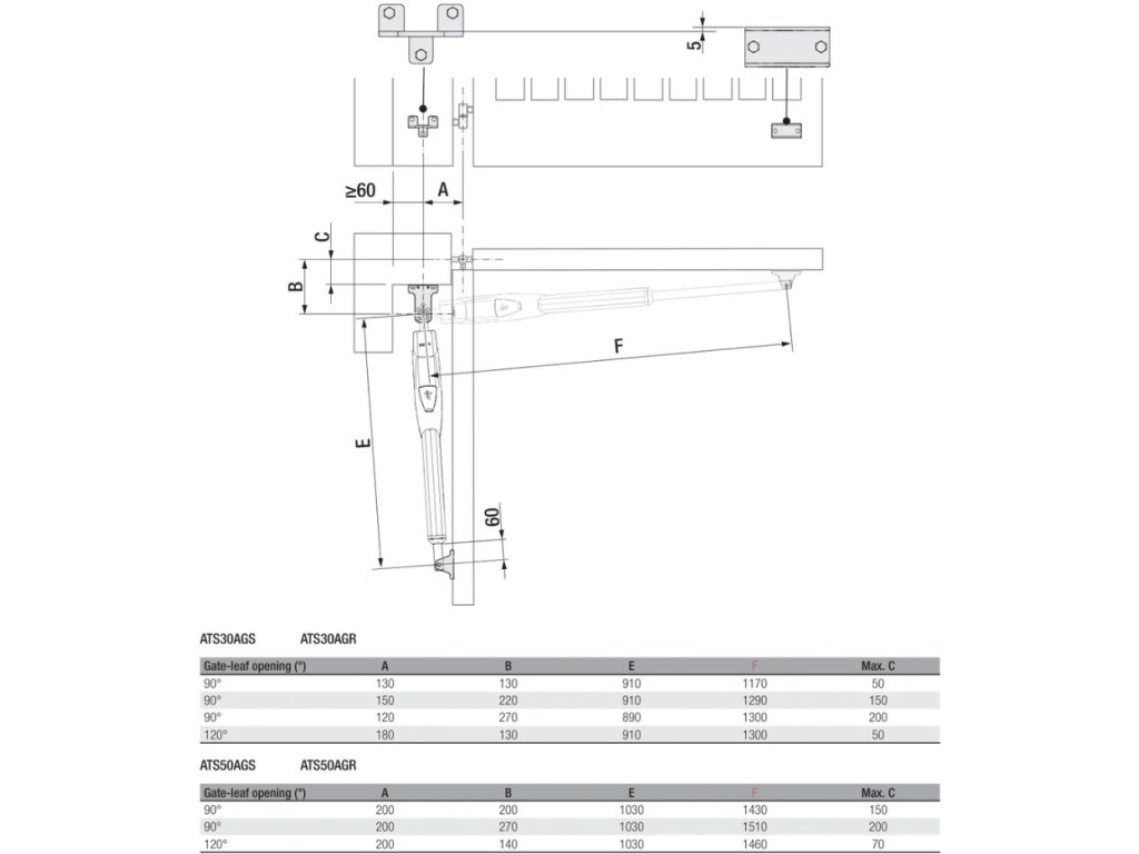 Možnost kotvení na široký sloupek – vzdálenost osy pantu křídla brány od hrany sloupku může být až 200 mm