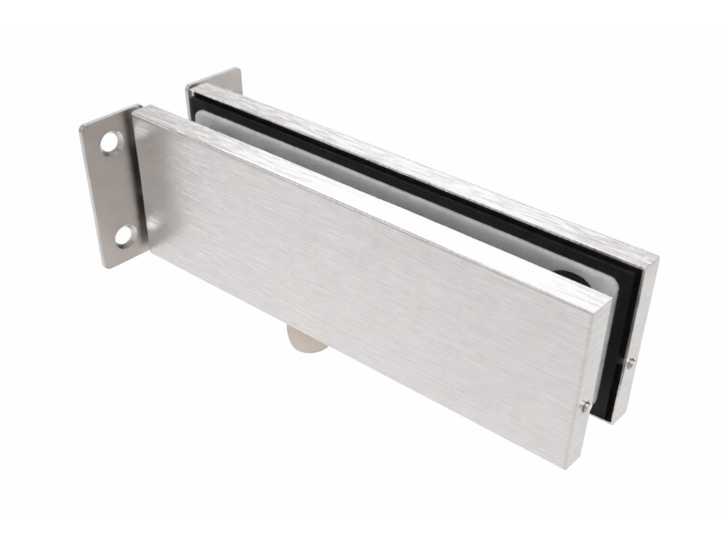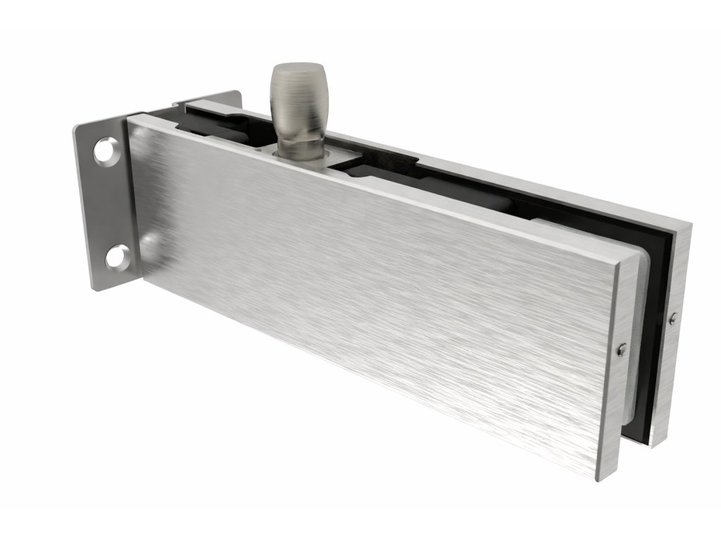 Vhodný pro sklo tloušťky 10–12 mm s nutností vrtání otvoru ve skle. Umožňuje centrování otvoru v rozsahu ±2,5 mm, což usnadňuje přesnou montáž a napojení na závěsový systém.