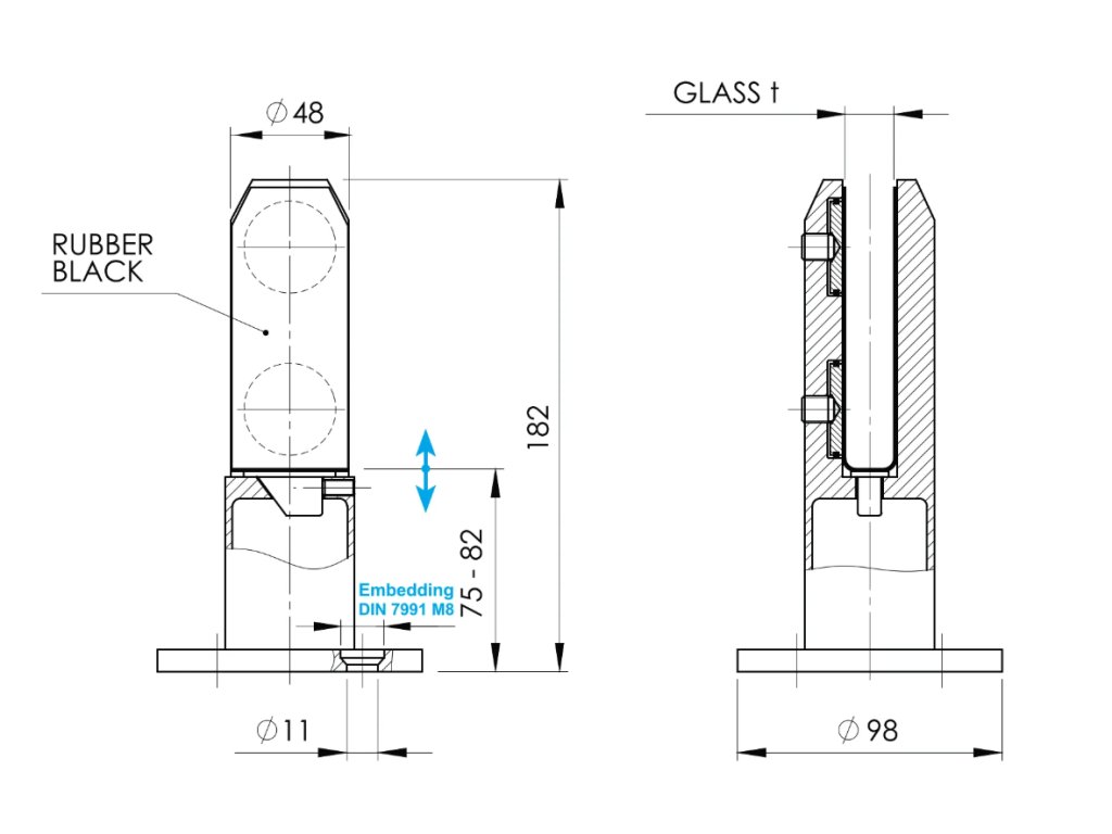 Podlahový držák skla, pro sklo 12-17,52mm, AISI 304, broušený