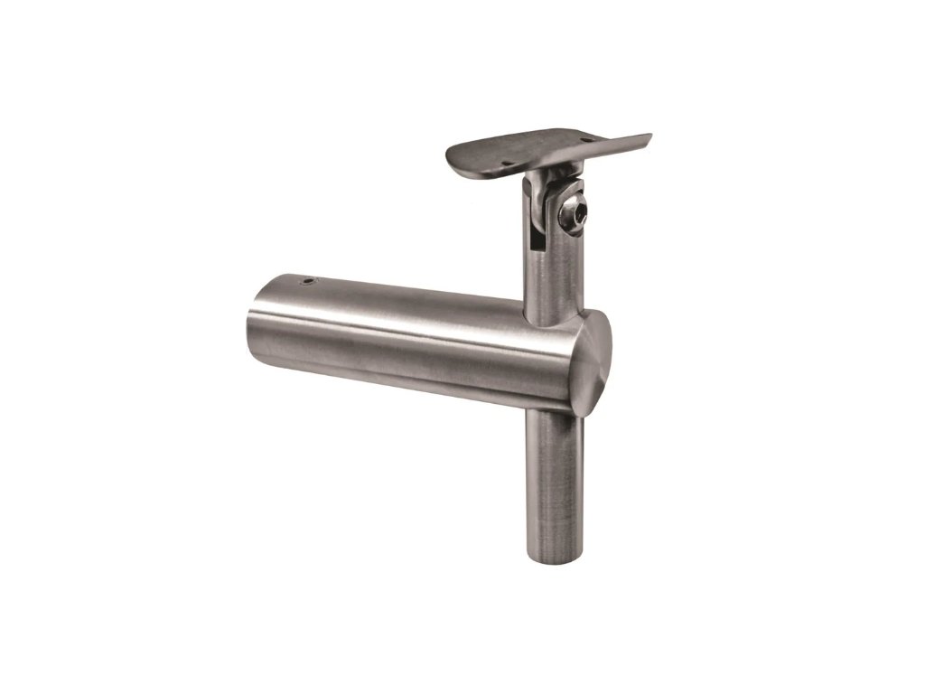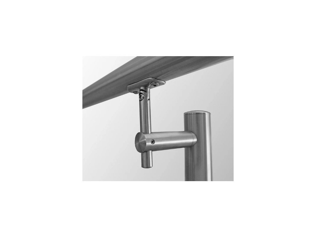 Nerezový držák madla mimoosového provedení určený pro montáž na sloupek Ø42,4 mm. Konstrukce umožňuje nastavení výšky i sklonu madla, což zajišťuje snadné přizpůsobení různým typům schodišť a zábradlí. Vyroben z nerezové oceli AISI 316, která poskytuje vysokou odolnost proti korozi a je vhodná i pro náročné vnitřní i venkovní prostředí. Kotvení držáku ke sloupku je řešeno montážním spojem, který zajišťuje pevné a spolehlivé uchycení.
