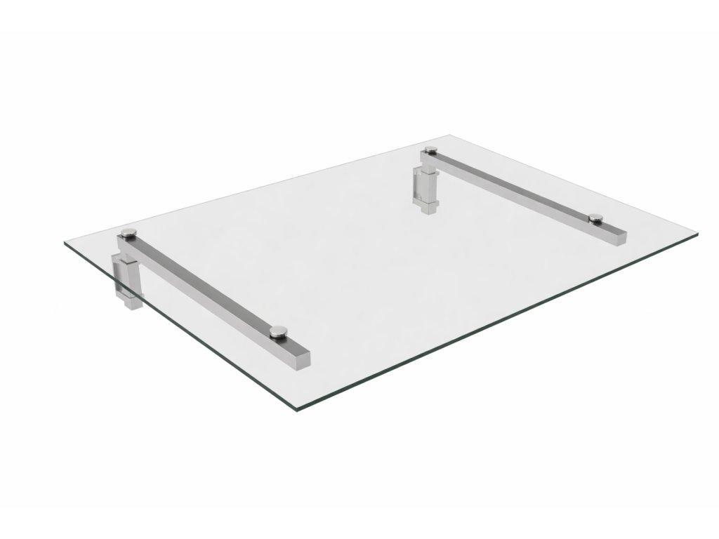 Nerezová stříška AISI 304 s držáky pro sklo ESG/VSG v povrchové úpravě brus.