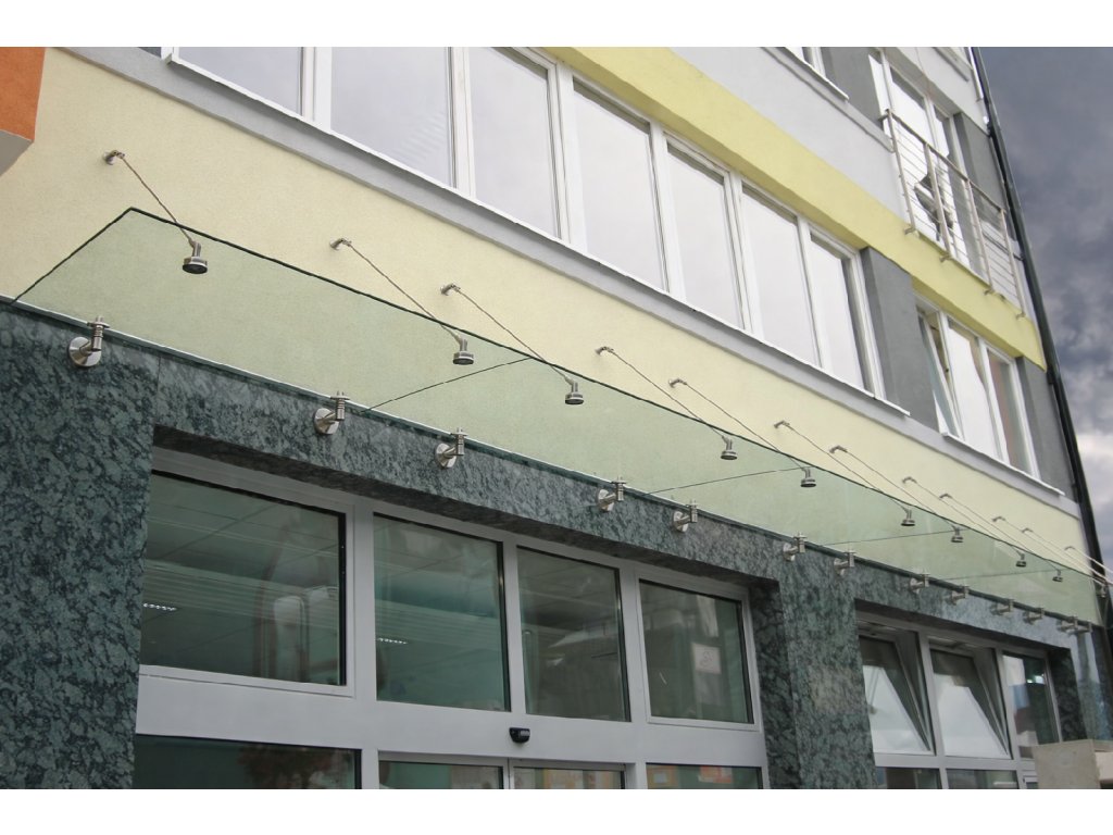 Kompletní táhlo pro skleněný přístřešek z nerezové oceli AISI 304 v povrchové úpravě brus.