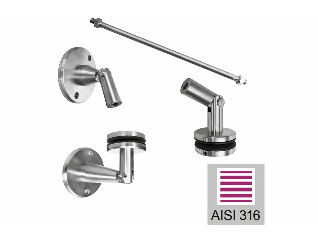 Nerezová sada pro skleněný přístřešek z materiálu AISI 316 v povrchové úpravě brus.