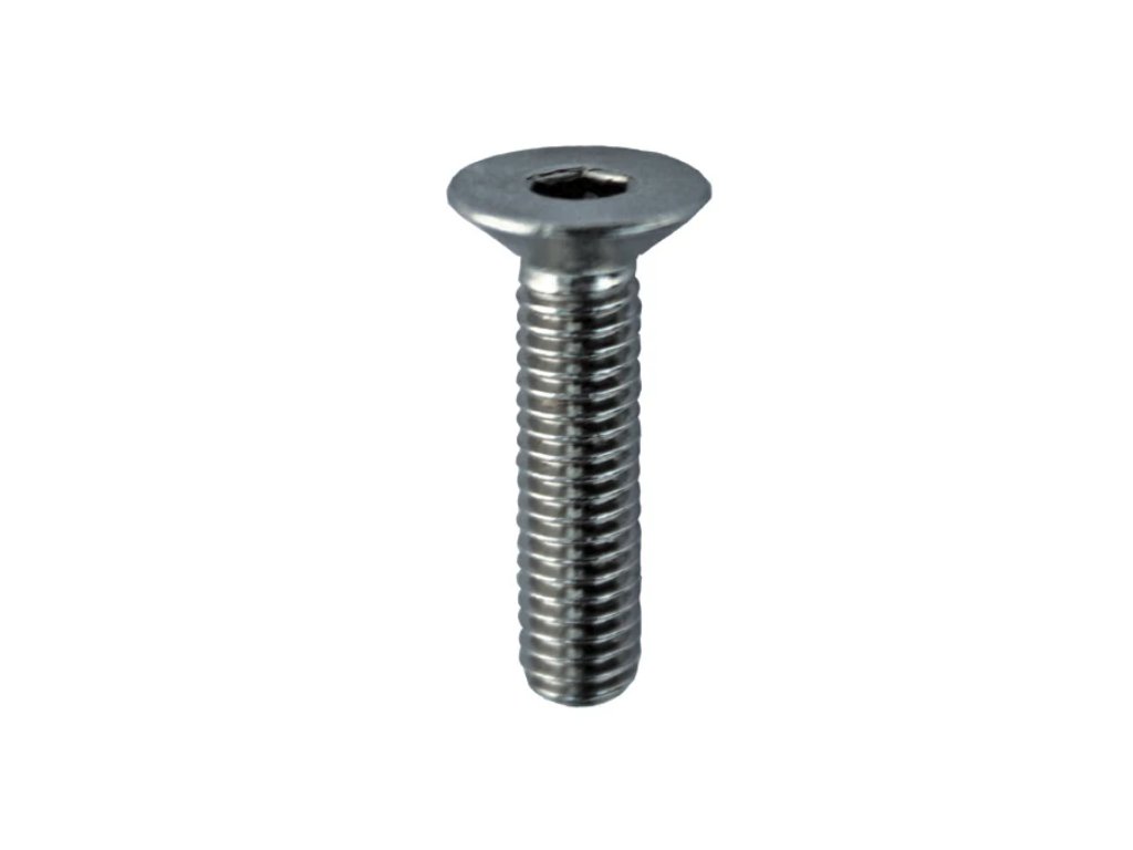 Šroub se zápustnou hlavou podle standardu DIN 7991, vyrobený z nerezové oceli AISI 304 v surovém stavu. Má plochý vrch s kónickou dosedací plochou a zapuštěný šestihranný otvor, což umožňuje hladké a rovné usazení. Ideální pro montáže nerezových zábradlí, strojů, zařízení či automobilových komponent. Vhodný pro širokou škálu průmyslových aplikací.