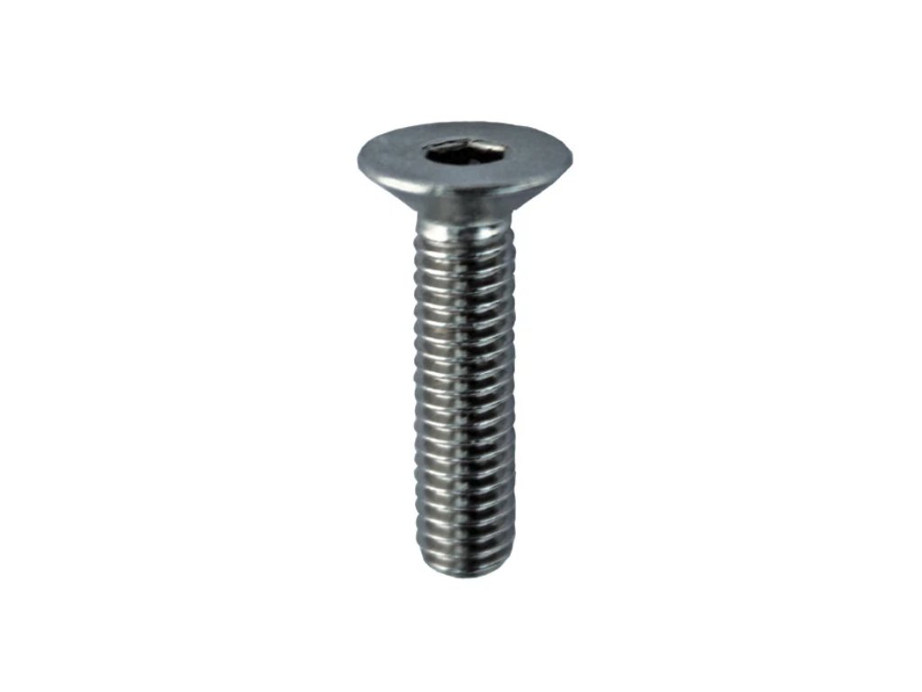 Šroub se zápustnou hlavou podle standardu DIN 7991, vyrobený z nerezové oceli AISI 304 v surovém stavu. Má plochý vrch s kónickou dosedací plochou a zapuštěný šestihranný otvor, což umožňuje hladké a rovné usazení. Vhodný pro montáže nerezových zábradlí, strojů, zařízení, automobilových komponent a širokou škálu průmyslových aplikací.
