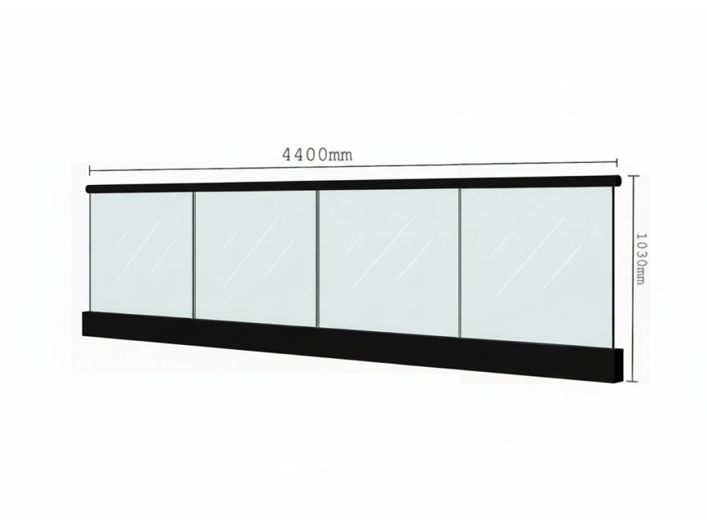 Celoskleněné zábradlí Philadelphia (komplet) s madlem Ø 42,4mm - délka 4400mm