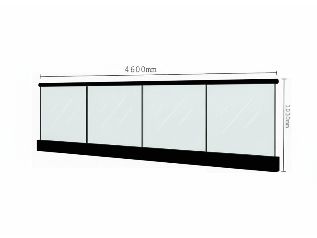 Celoskleněné zábradlí Philadelphia (komplet) s madlem Ø 42,4mm - délka 4600mm
