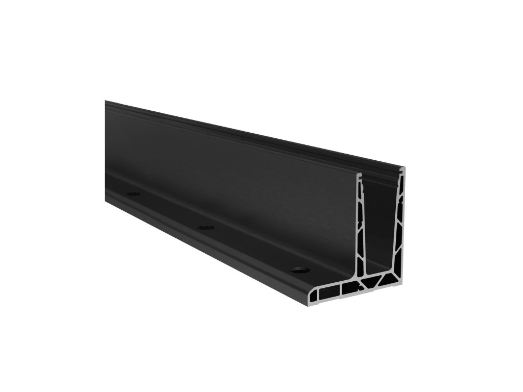 Hliníkový kotvící profil pro sklo určený pro vrchní kotvení do podlahy.