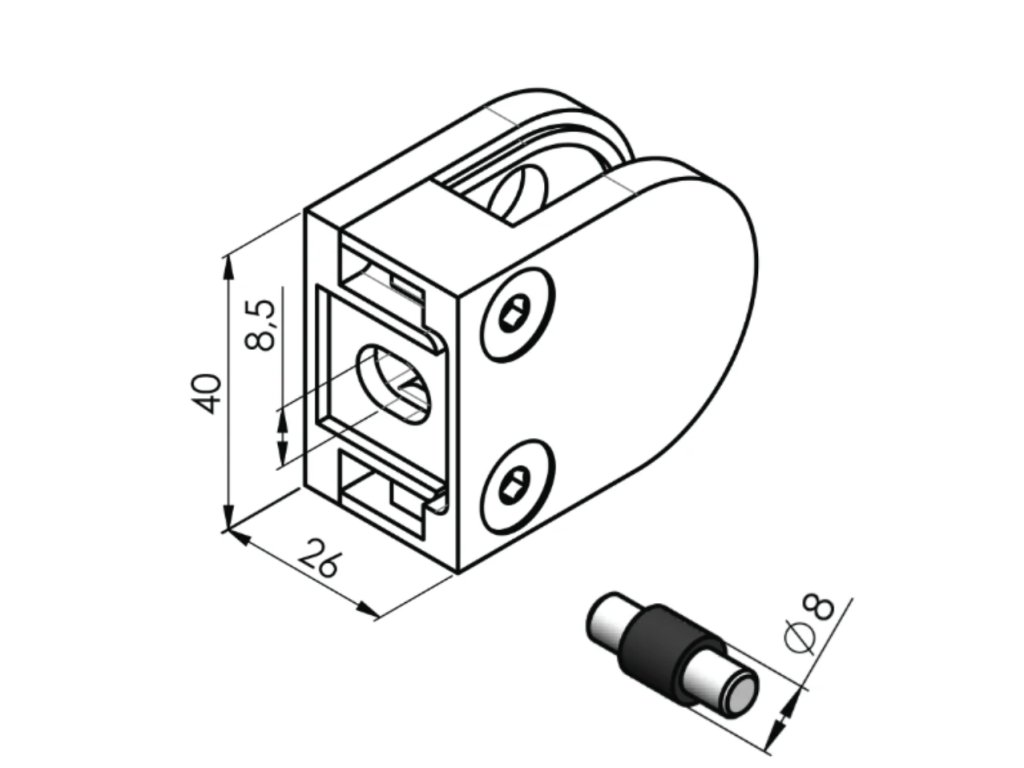 Tento držák slouží k upevnění a stabilizaci skleněné, plechové či tabulové výplně v konstrukcích jako jsou zábradlí, balkony nebo schodiště. Zajišťuje pevné a bezpečné uchycení výplně a zvyšuje stabilitu a bezpečnost celé konstrukce. Design je moderní a vhodný pro esteticky náročné architektonické realizace.